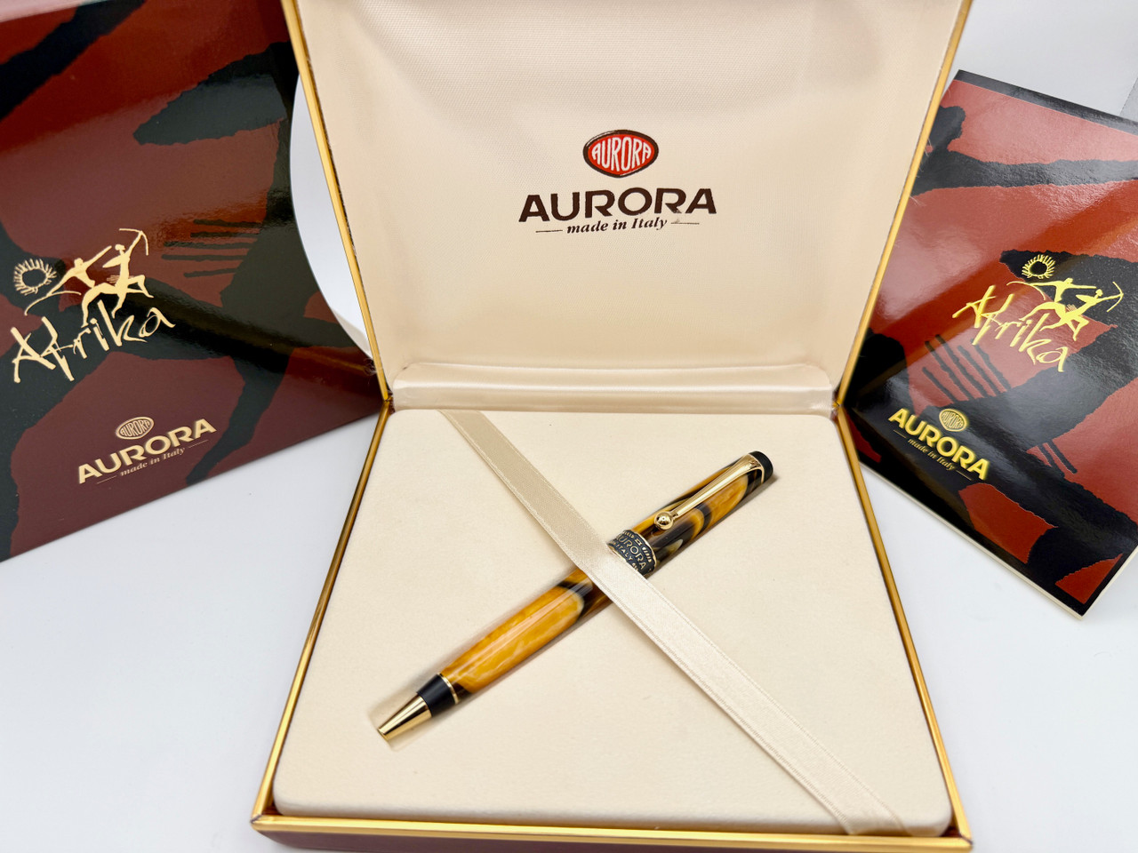 Loading... Please wait...Inspired by rich earth tones, the Aurora Afrika Limited Edition blends black and brown hues with a matte finish, capturing the elegance and artistry only an Italian master can create. The cap ring features a striking high-relief design of six African tribal shields, adding cultural depth and visual distinction. A deep-black onyx stone, delicately set into the cap, adds a touch of luxury. Limited to just 7,500 Ballpoint pieces worldwide, this is a rare and refined collector’s piece.