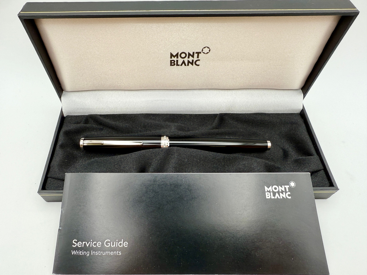 The Beautiful and elegant 2025 Montblanc PIX Rollerball Pen in Black Resin cap and barrel with Platinum coated trim. This pen comes new in its original box with all of its original Montblanc booklet. Inspired by the Bauhaus architecture movement and named after the historical PIX trademark this pen is an absolute must have for any Montblanc lover!