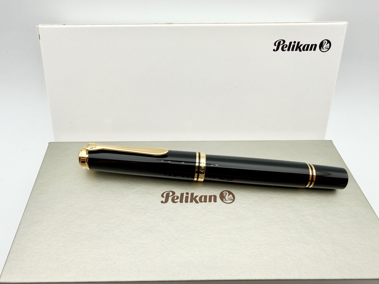 The Pelikan Souverän M1000 is Pelikan's flagship fountain pen. The solid black pen is complemented by 24k gold plated accents. The large medium point nib is made of 18k gold, refined with a rhodium decor, and writing quality tested by hand.