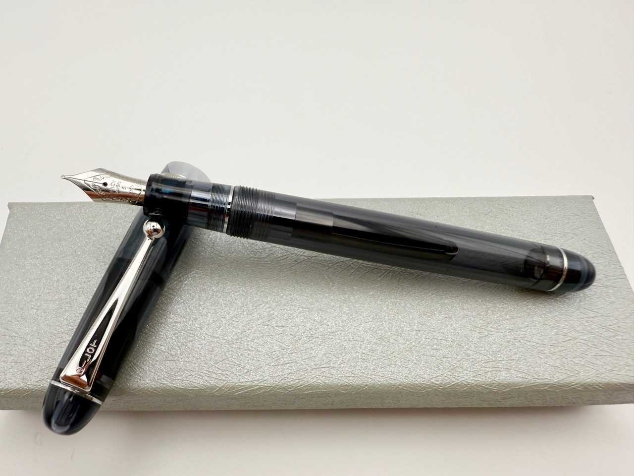 Pilot Custom 74 Fountain Pen in translucent Smoke Grey color. Pen has a medium point #5 14k solid gold nib that is very smooth on paper and an amazing writer. Excellent condition with no signs of heavy wear. Cartridge or converter fill and will come with original aerometric converter.