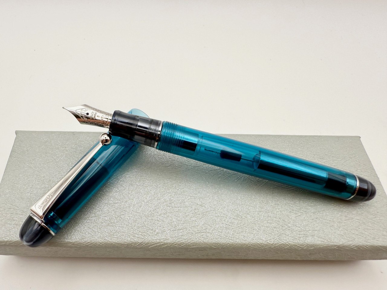 Loading... Please wait...Beautiful Pilot Custom 74 Fountain Pen in translucent Teal color with silver trim. Pen is new without box and comes with a fine point 14k rhodium nib that is very smooth on paper. Cartridge or converter fill and will come with original converter.