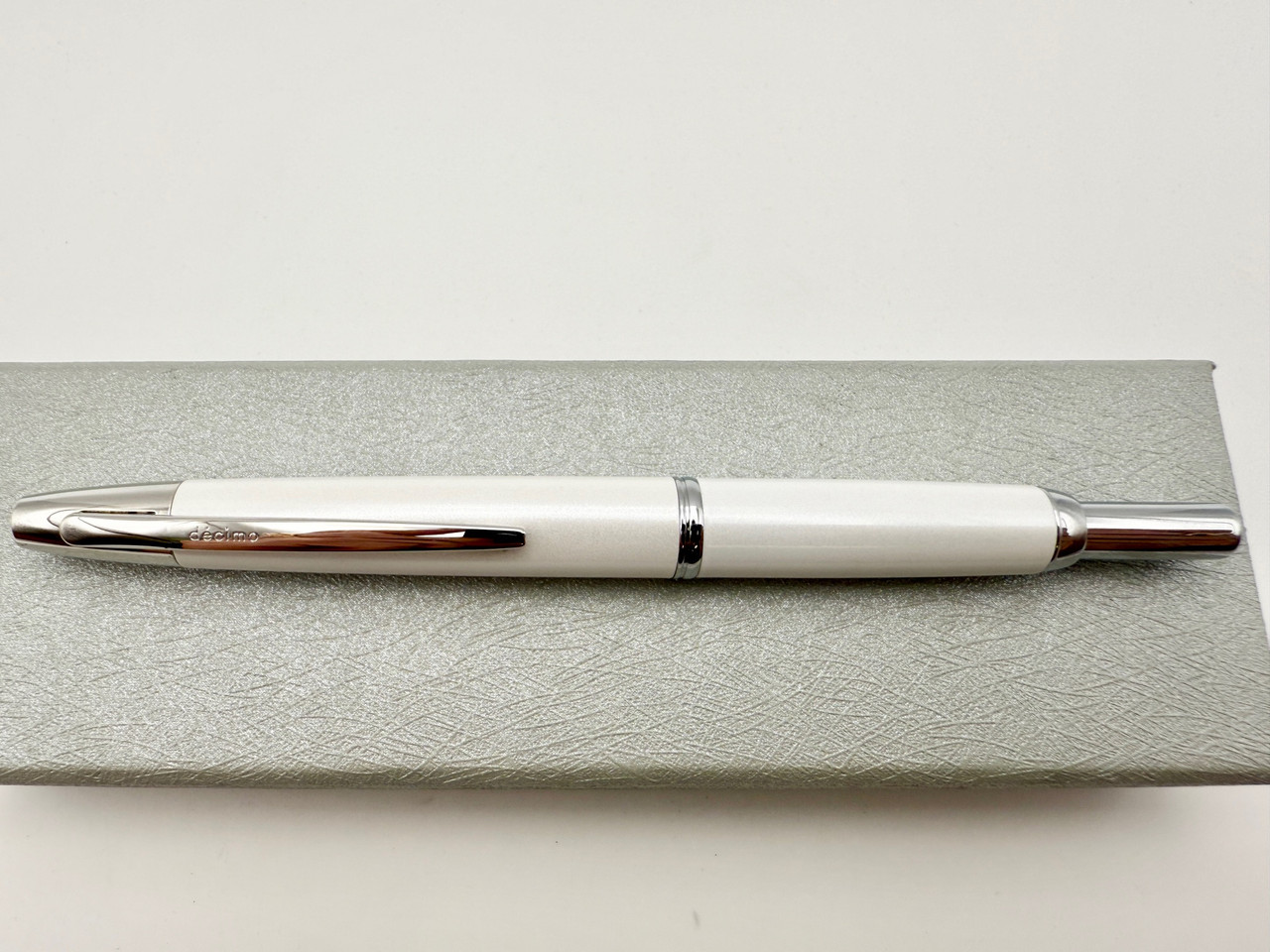 Pilot Capless Decimo Vanishing Point Fountain Pen in beautiful white color. Pen has a Fine point 18k solid white gold nib that is extremely smooth on paper. Cartridge or converter fill and comes with original converter.