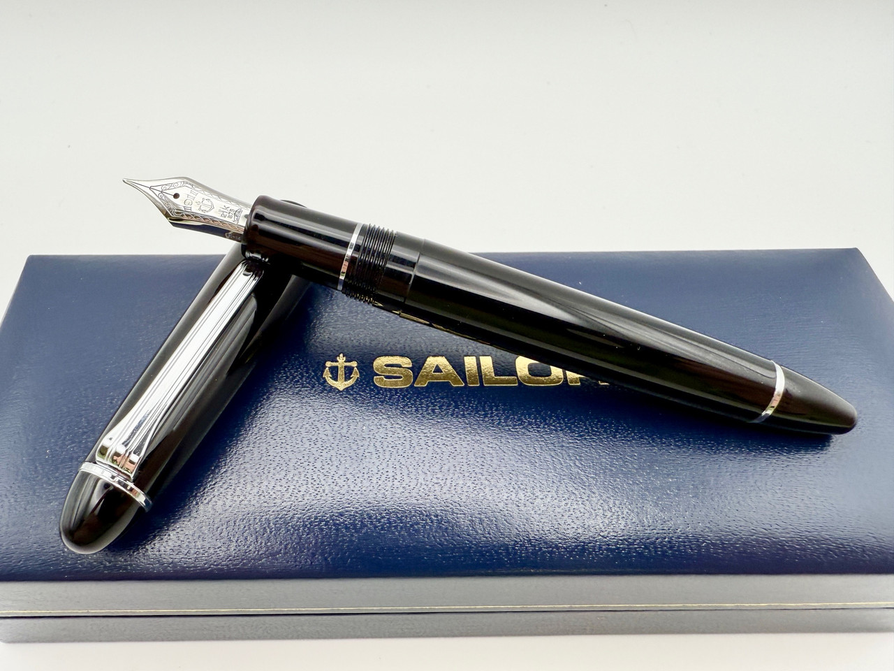 Loading... Please wait...Sailor 1911L large Profit Fountain pen in Black lacquer with Platinum trim new in box. Pen has a Hard Medium 21k gold nib that is excellent and very smooth on paper. Pen comes in original Sailor box with a converter.