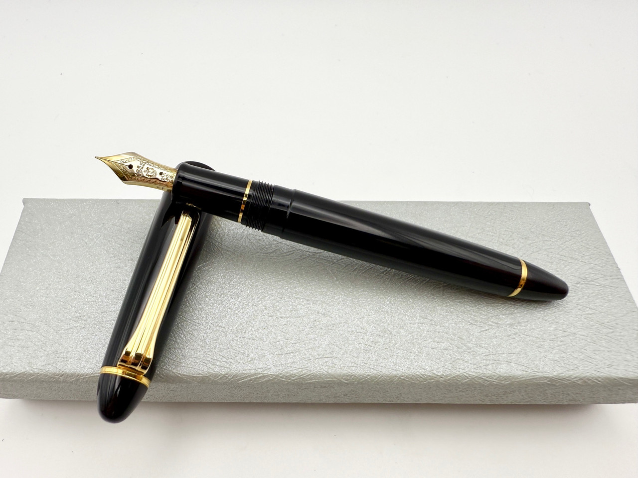 Loading... Please wait...Sailor 1911 Profit Standard Size Fountain Pen in Black with gold filled trim. Pen has a Hard-Fine 21K solid gold nib that is very smooth on paper and a great writer. Cartridge or converter fill and comes with original converter.