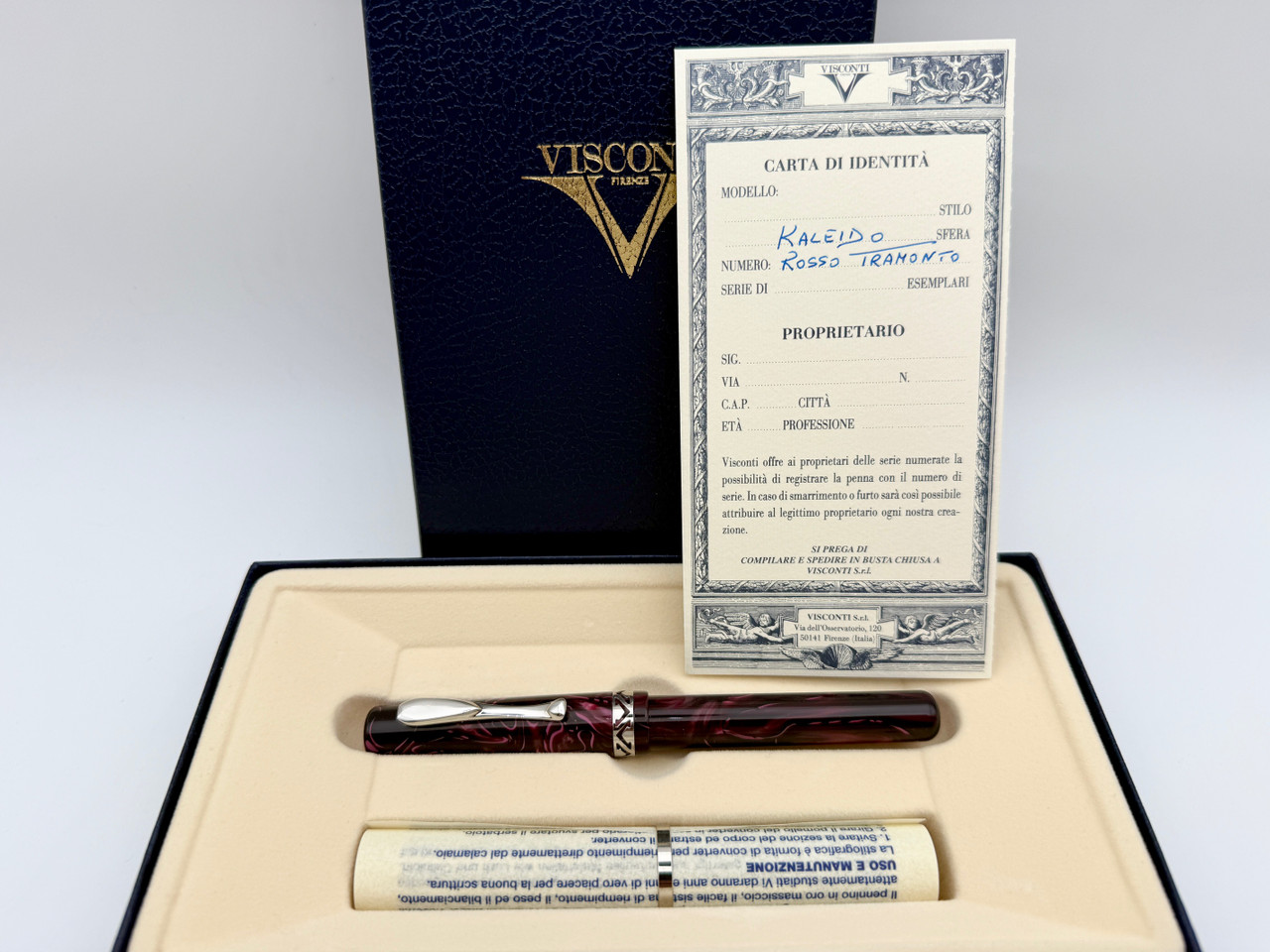 Loading... Please wait...Beautiful Visconti Koleido Voyager Rollerball Pen in gorgeous Rosso Tramonto Purple Swirl Acryloid. Pen comes in original box with paperwork talking about everything about the pen! Absolutely beautiful rollerball pen with an amazing feel in hand.
