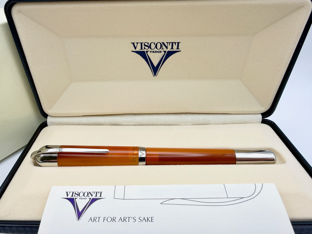 Beautiful Visconti Pericle 2001 Rollerball Pen in Orange Pearl color. Pen comes in original box with outer box and papers. second generation of the Pericle.