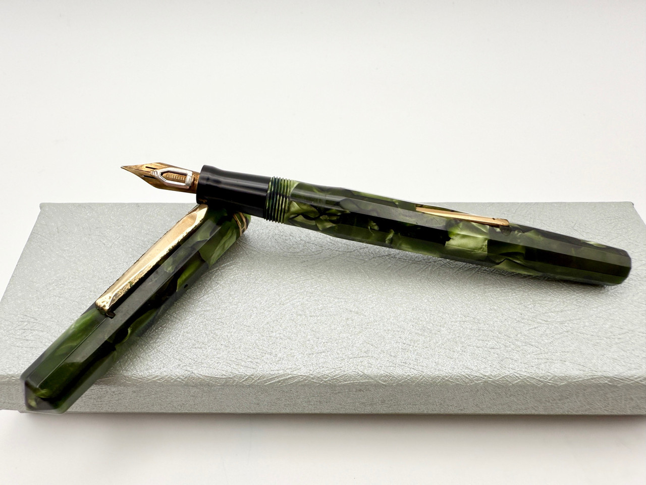 Loading... Please wait...Beautiful Wahl Eversharp Doric Fountain Pen in beautiful green marble color with a wonderful extra fine point 14k Wahl #3 Adjustable nib that is extremely smooth on paper and gives amazing line variations with nib adjustments! Lever filling system is working perfectly and pen is in excellent condition.