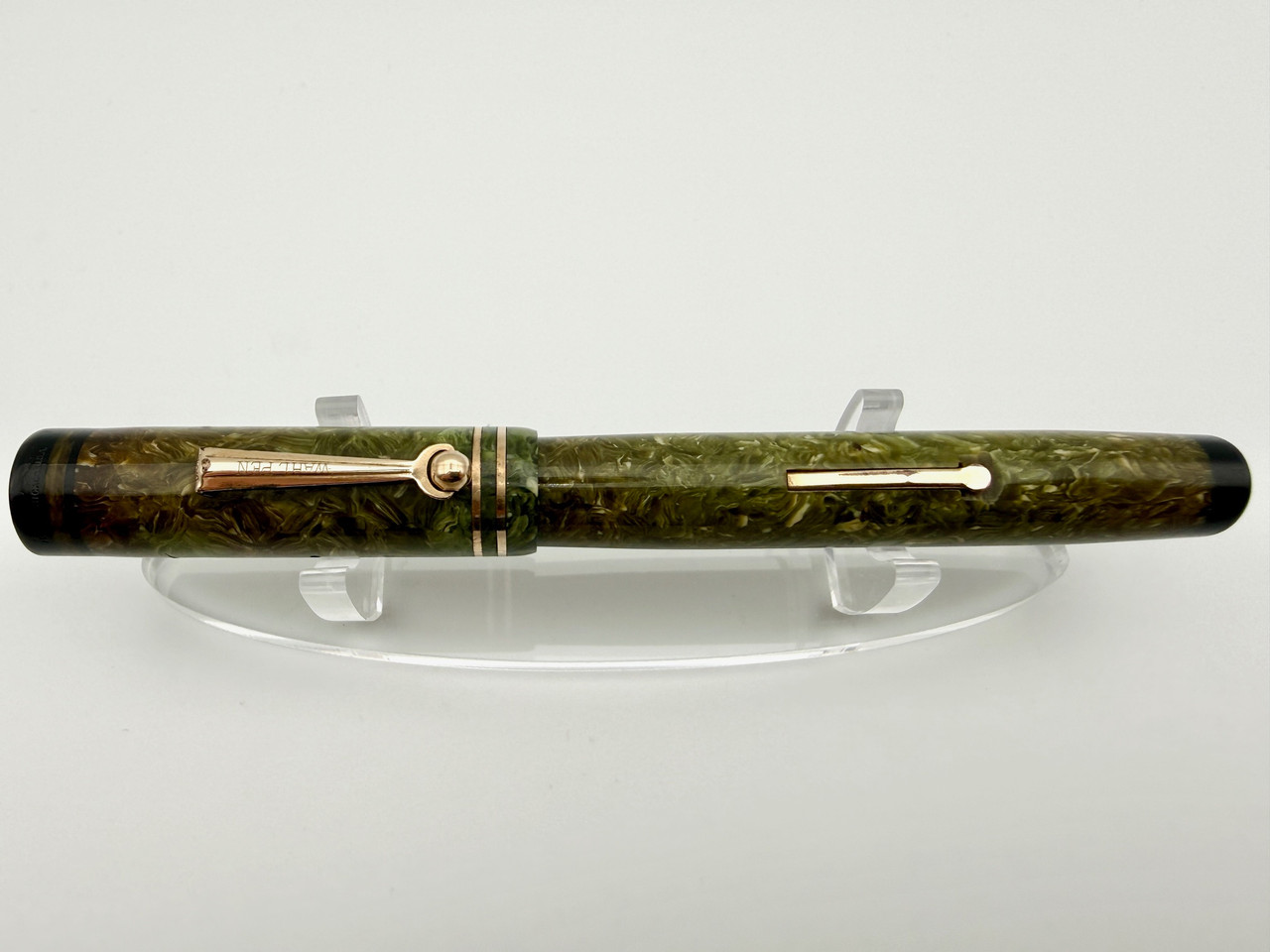 Loading... Please wait...Wonderful Large Wahl Eversharp Signature Flat Top Fountain Pen in Jade Green color. Pen is in great condition with great shine left but some discoloring to the jade throughout which is normal. Very smooth Fine point large #6 14k nib. Lever filling system is working perfectly. Pen is all original clip, nib, and feed!