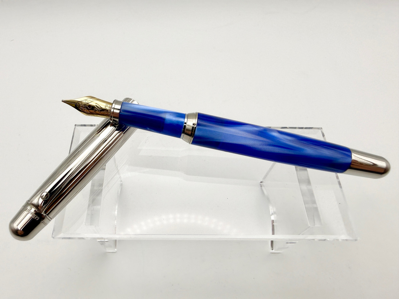 Loading... Please wait...Beautiful Waldmann Germany Fountain Pen in blue marble color with a solid sterling silver cap and accents. Pen is in excellent like new condition and is cartridge or converter fill and comes with its original converter. Solid 18K gold fine point nib that is very smooth on paper and a wonderful writer. Amazing feel in the hand.