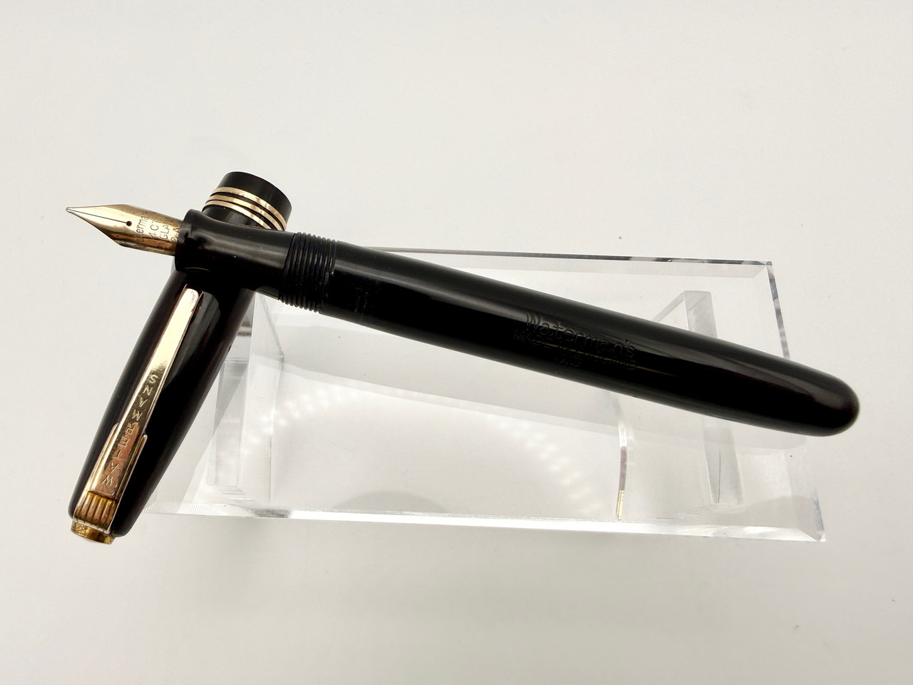 Loading... Please wait...1940's Waterman England 513 Fountain Pen in black with gold filled trim. Pen is in excellent condition with great color and no heavy marks. Fine point wonderful Waterman 2A Flexible 14k nib that is a great writer. Lever filling system is working perfectly.